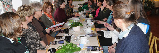 Man kan låna en bok från vårt lilla bibliotek eller en veckotidning.