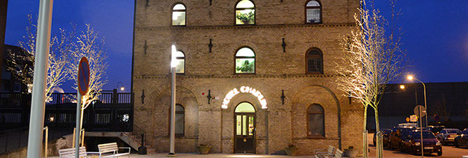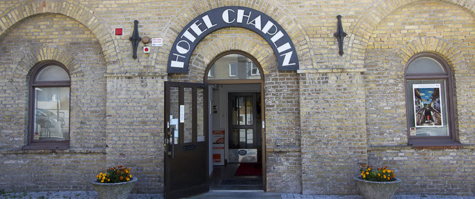 Hotel Chaplin är ett charmigt hotell på Östergatan i centrala Landskrona. 400 meter från hotellet börjar gågatorna med alla trevliga butiker, restauranger och caféer. Här finner man också Teatern, Museet, Konsthallen, Skulpturparken, Citadellet, Blomstergatan, Walk of Fame, Sveriges äldsta kolonier och havet. 100 meter från hotellet stannar bussen från/till Järnvägsstationen.